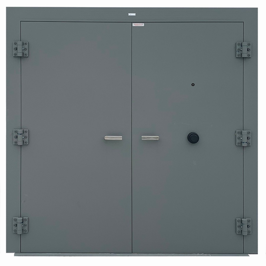 Compliant with AA-D-600D standards for Class 5 GSA Approved Vault Doors. Designed specifically for use with our MegaCrete Vault and Lightweight Modular Vaults, the Class 5 Scimitar vault door offers a high degree of burglary resistance that meets AA-D-600D GSA Class 5 standards.