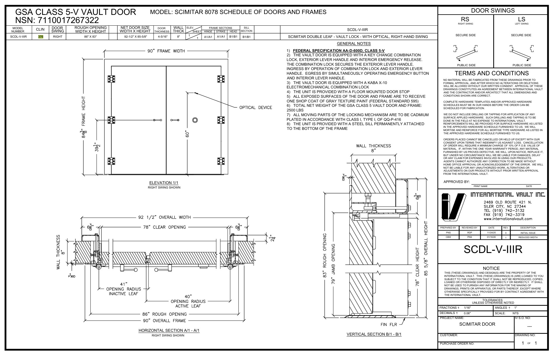 As a GSA contract awardee for Solicitation 47QSSC-25-R-3040N, International Vault boasts 20 new National Stock Numbers for Vault Doors compliant with AAD-600D available for purchase through the GSA Schedule. The SCDL-V-IIIR model listed below complies with stringent GSA specifications and standards.