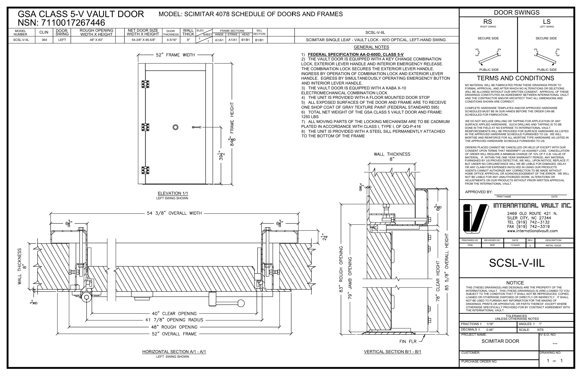 As a GSA contract awardee for Solicitation 47QSSC-25-R-3040N, International Vault boasts 20 new National Stock Numbers for Vault Doors compliant with AAD-600D available for purchase through the GSA Schedule. The SCSL-V-IIL model listed below complies with stringent GSA specifications and standards.